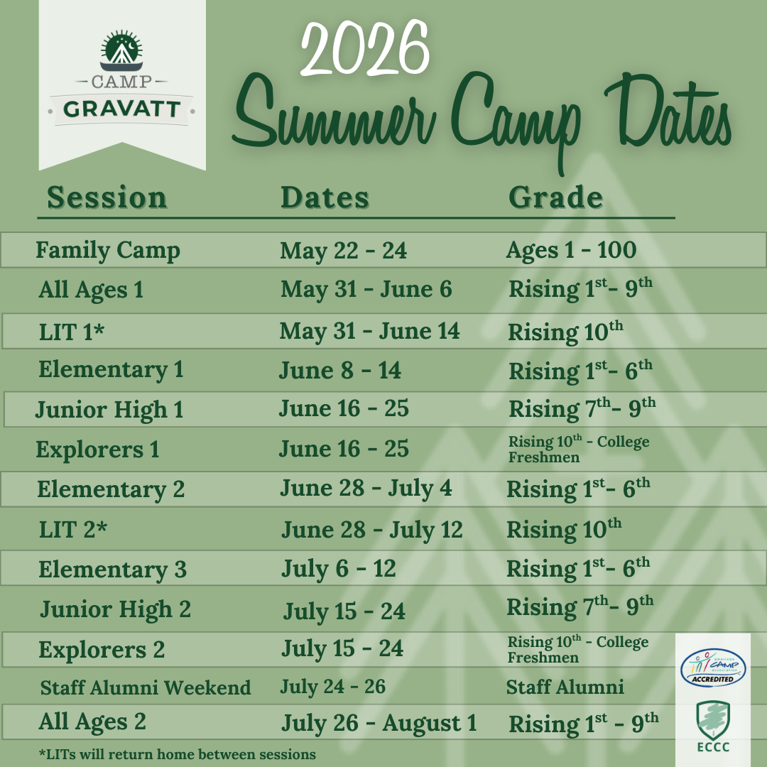 Registration for Camp Gravatt 2026 will open on November 4th, 2025.